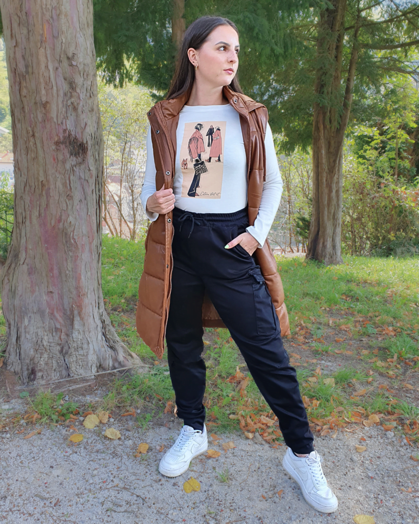 Sproščen izlet na prostem: Če se odpravljate na izlet na prostem, jih kombinirajte s funkcionalnimi športnimi čevlji, anorakom in klobukom za zaščito pred soncem. Ne pozabite na sončna očala!