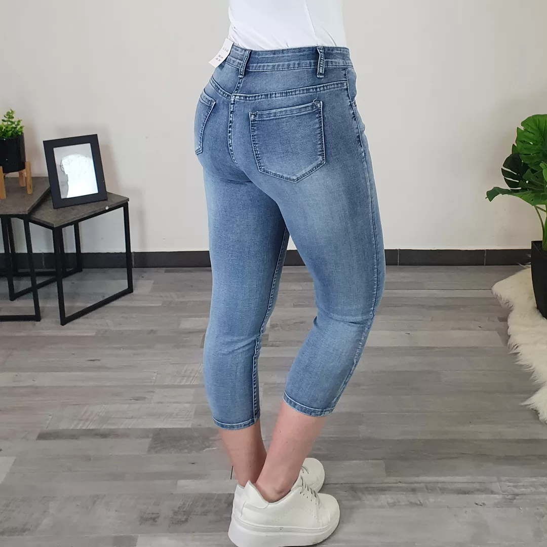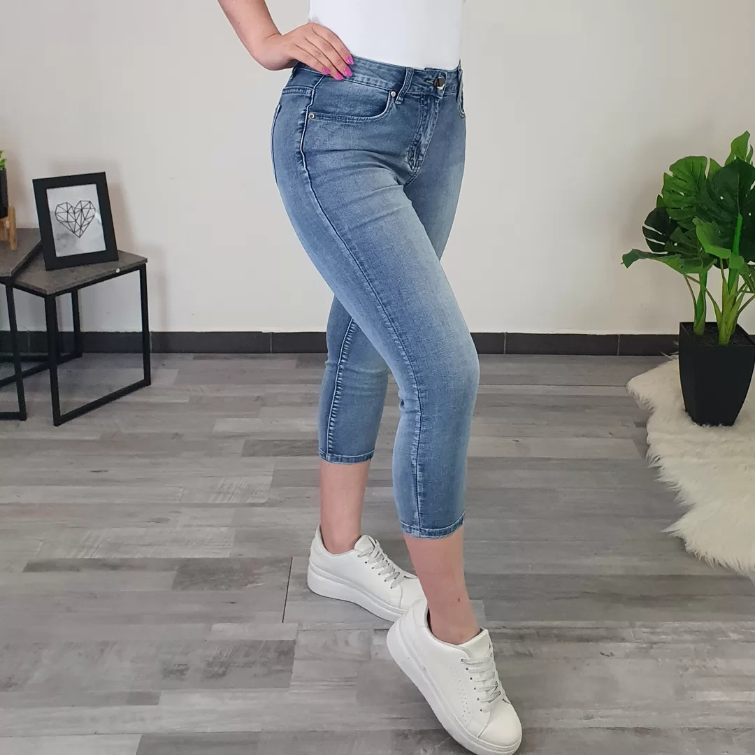 Elastične jeans hlače v dolžini 7/8.