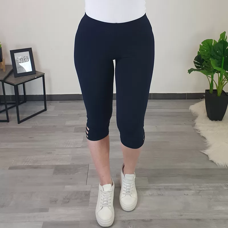 Bombažne pajkice Seta v temno modri barvi. Pajkice so v dolžini 3/4, na spodnji zunanji strani hlačnic so dodani trije trakovi, kar daje pajkicam poseben izgled. Pajkice so krojene od velikosti 38 do 56.