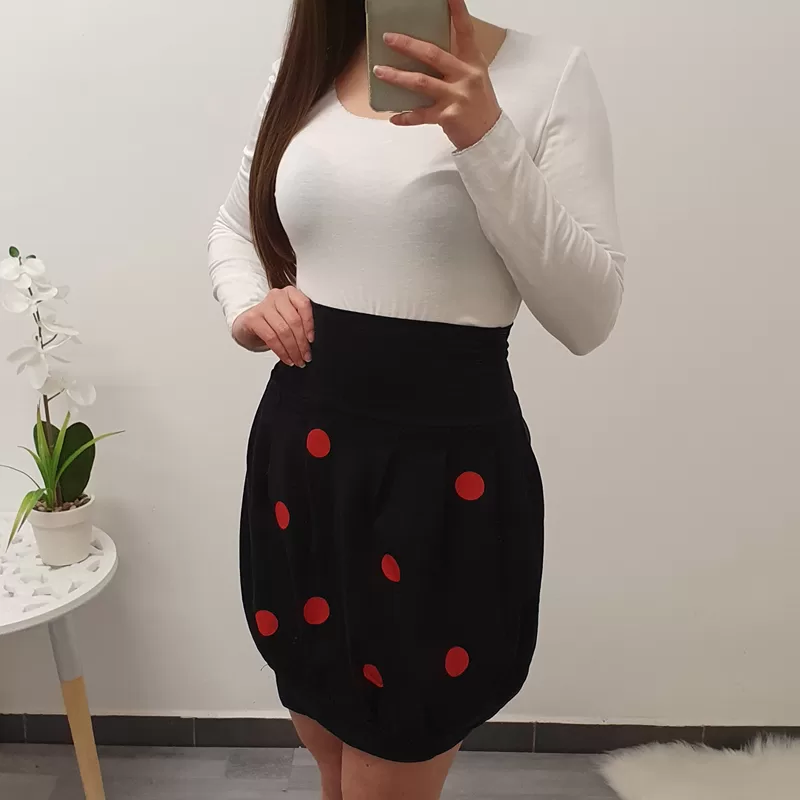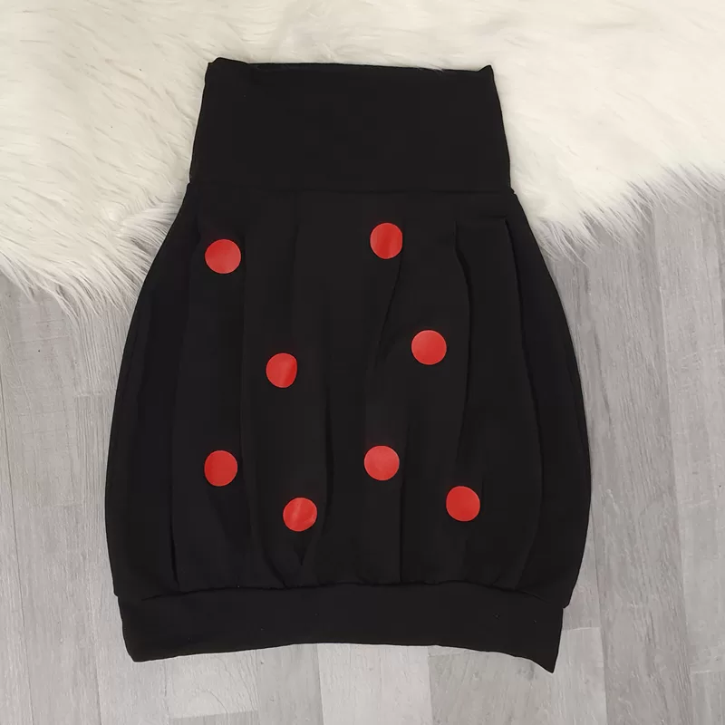 Krilo Dani v črni barvi, s pikami v rdeči. Krilo je krojeno na ‘balon’, na spodnjem delu ima patent.