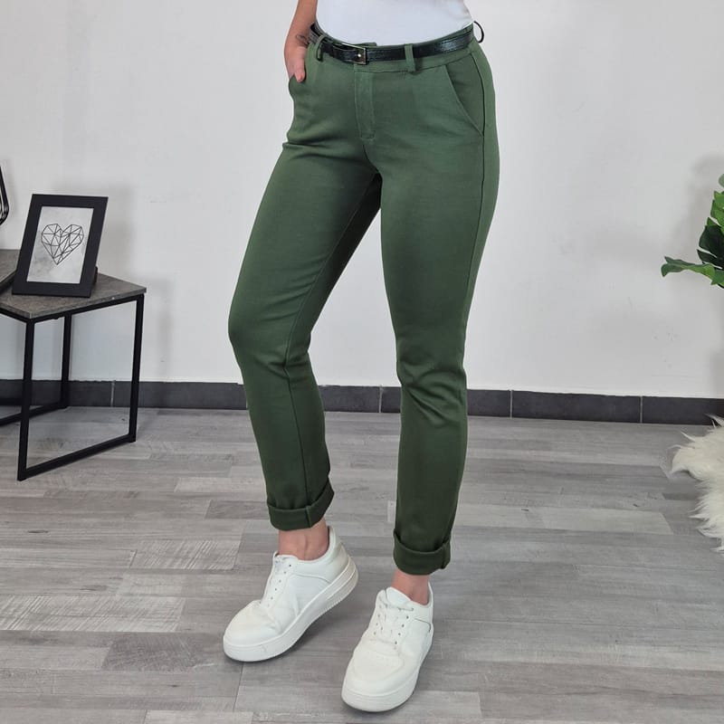 Ženske dolge ozke hlače s pasom.