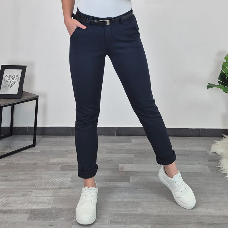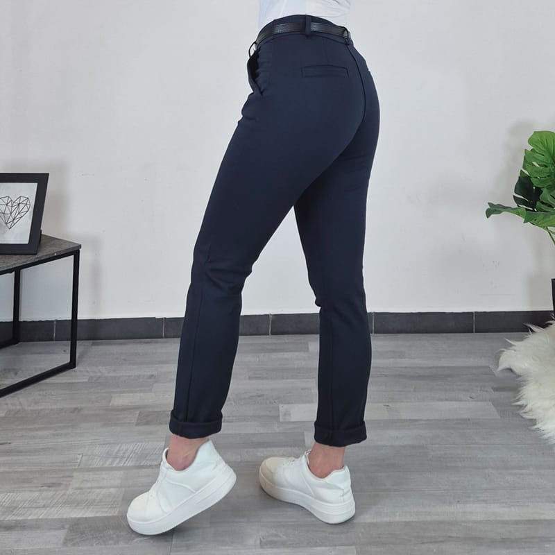 Ženske dolge hlače. Narejene so iz zelo elastičnega materiala, so zelo mehke in udobne. Hlačnice so ozke, lahko jih tudi zavihate v 7/8. Hlačam je priložen črn pas.