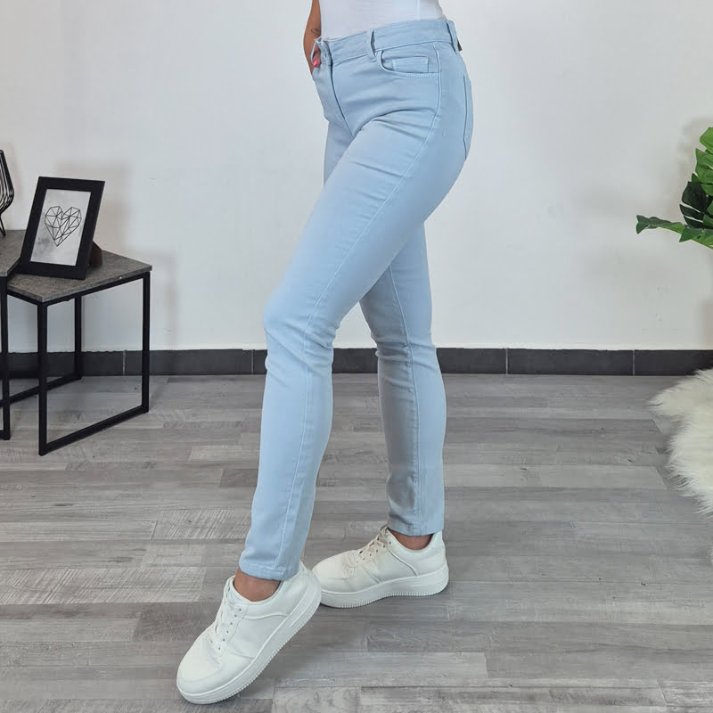 Ženske elastične hlače v svetlo modri barvi.