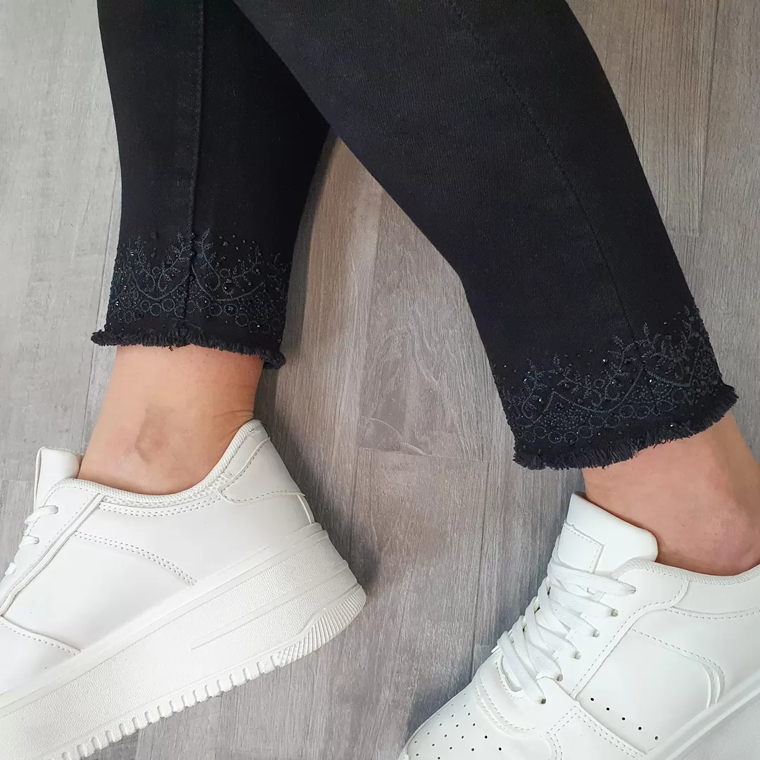 ŽENSKE ČRNE HLAČE Z BISERČKI
