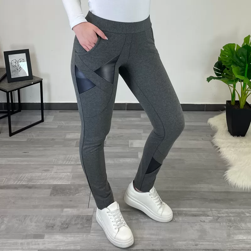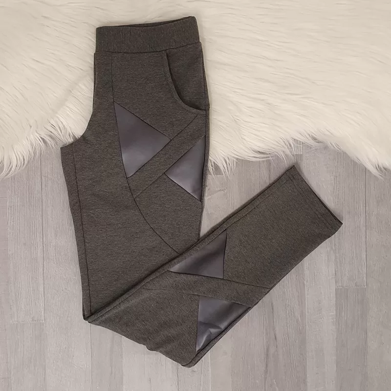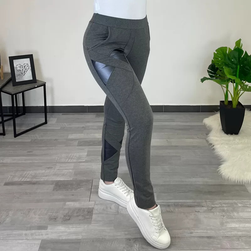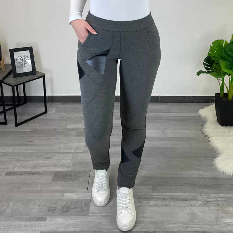 Športne hlače Ives v sivi barvi. Hlače imajo žepe in so brez patenta. Dodani so vzorčki imitacije usnja.