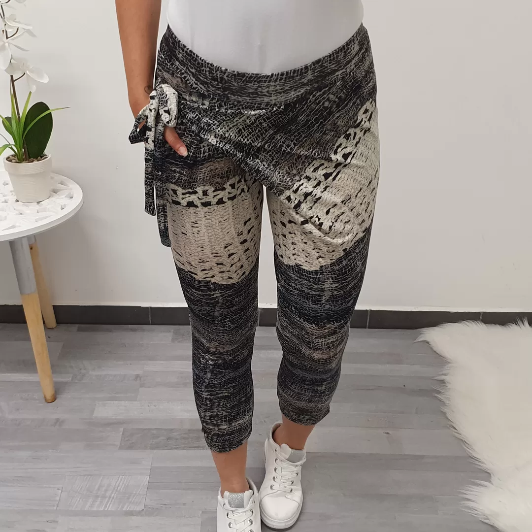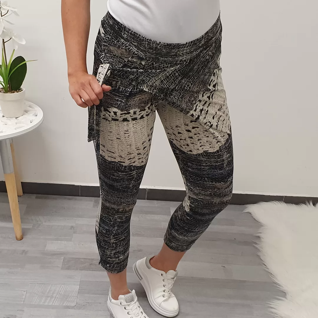 Športne hlače na preklop z vzorcem v bež in črni barvi. Hlače so v dolžini 7/8.
