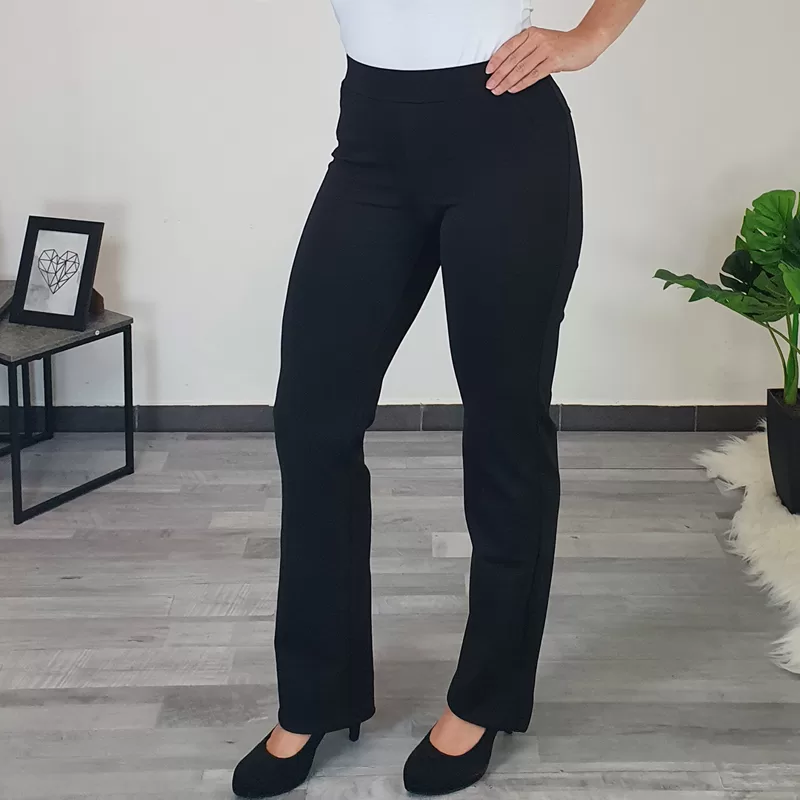 Modne hlače Nika v črni barvi. Hlače so v pasu na elastiko, hlačnice so dolge in ravno rezane. Izdelane so iz kvalitetne viskoze, so elastične in udobne za nošenje. Na voljo so od številke 38 do 50.