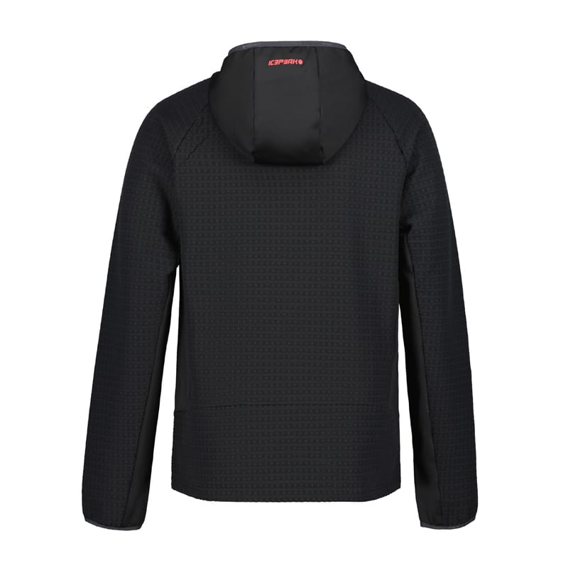 Icepeak Burdett moška športna jopa v črni barvi. Jopa se po celotni dolžini zapenja z zadrgo, prav tako se z zadrgo zapenjata tudi stranska žepa. Jopa je primerna za pohodništvo in druge športne aktivnosti v naravi. Ima kapuco in je premazana z vodoodbojnim premazom.