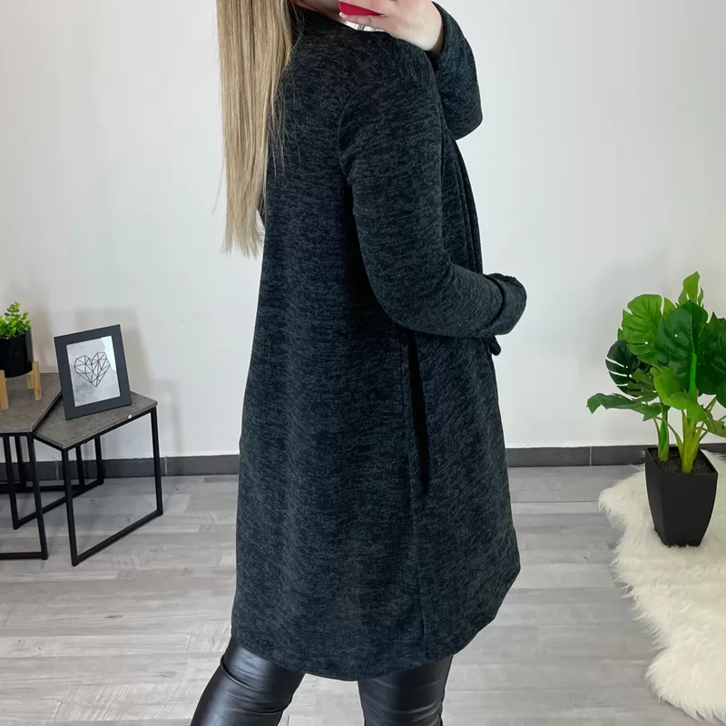 ŽENSKA PLETENA JOPA V TEMNO SIVI BARVI