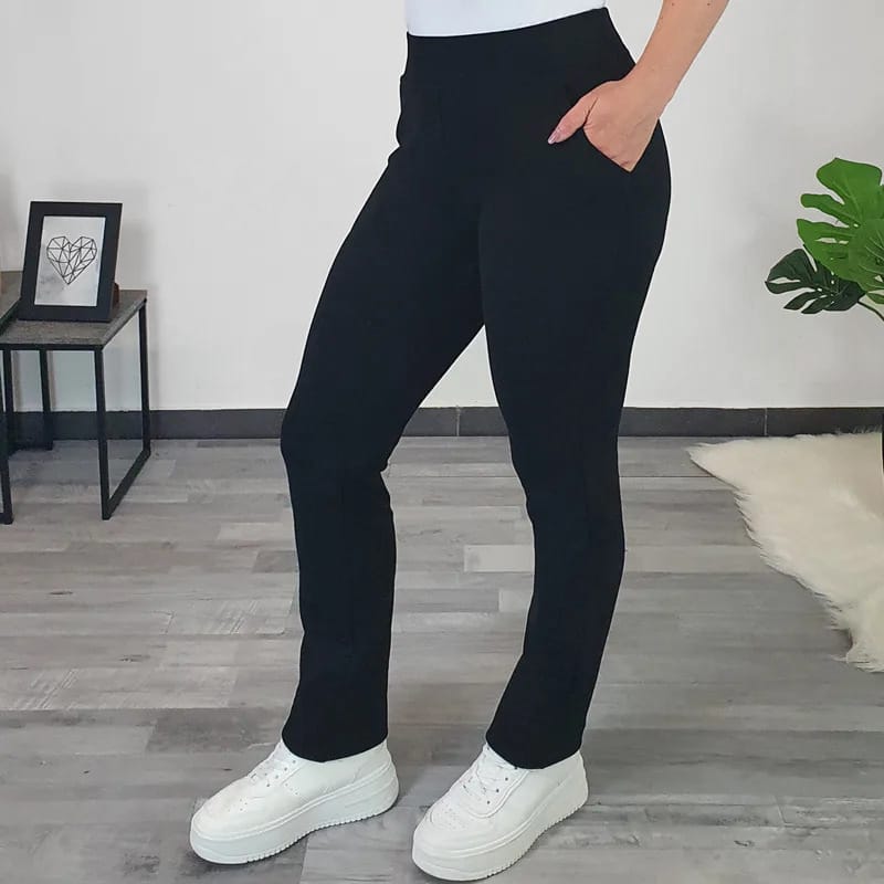 Kosmatene bombažne športne hlače Ajda v črni barvi. Hlače imajo višji pas na elastiko, hlačnice so dolge in širše, imajo dva stranska žepa. Izdelane so iz kvalitetnega bombaža in pri nošenju ohranjajo svojo obliko. Na voljo so od številke 38 do 50.
