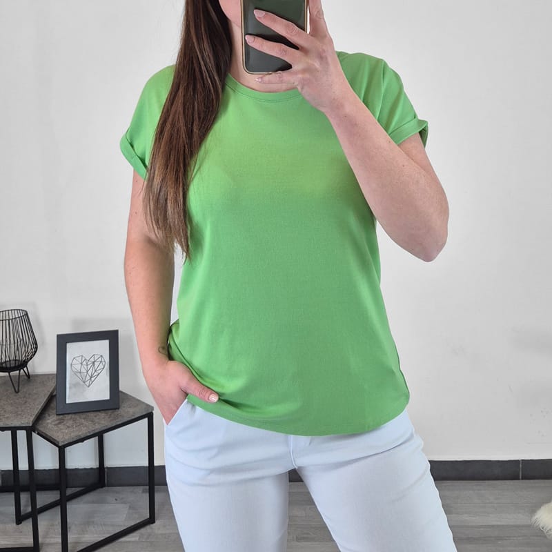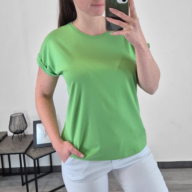 Ženska enobarvna majica s kratkimi rokavi. Narejena je iz visoko kvalitetne mešanice bombaža in modala, zato je zelo lahka in zračna in primerna za tople poletne dni. Na voljo je od številke S do 2XL.