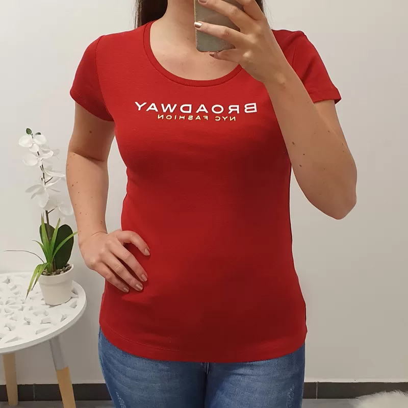 Majica Broadway s kratkimi rokavi. Majica je v rdeči barvi, s tiskom.