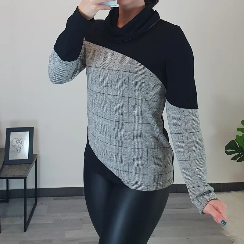 Modna majica Koda v kombinaciji črne in sive barve. Majica ima dolga rokava in ovratnik. Izdelana je iz kvalitetnega bombaža in je prijetna za nošenje.
