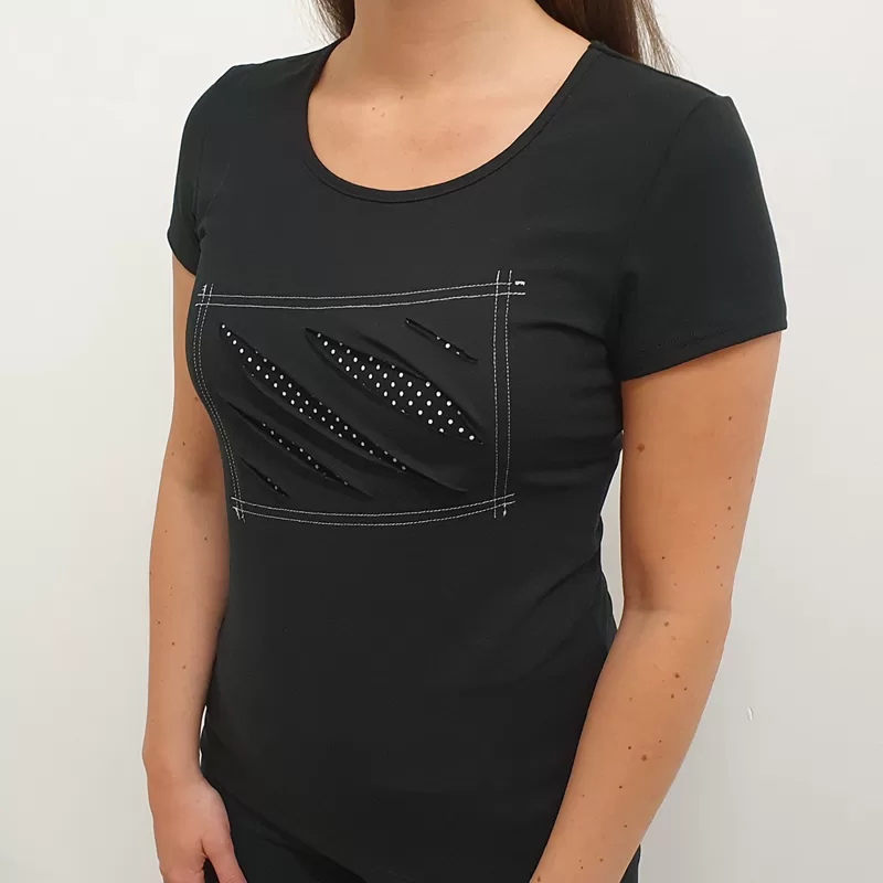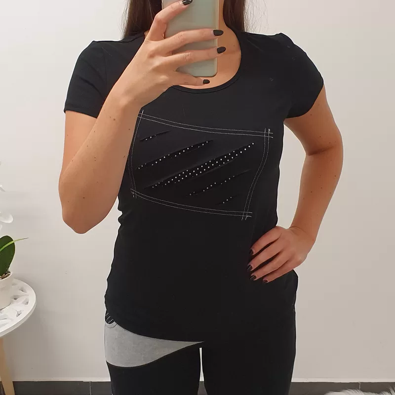 Majica Oma s kratkimi rokavi. Majica je v črni barvi.