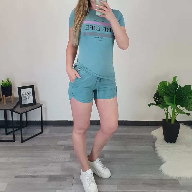 Modna bombažna majica v petrolej zeleni barvi. Majica ima kratka rokava in je rahlo oprijetega modela. Izdelana je iz kvalitetnega bombaža in je prijetna za nošenje. Na sprednji strani jo krasi tisk. Na voljo je od številke XS do XL.