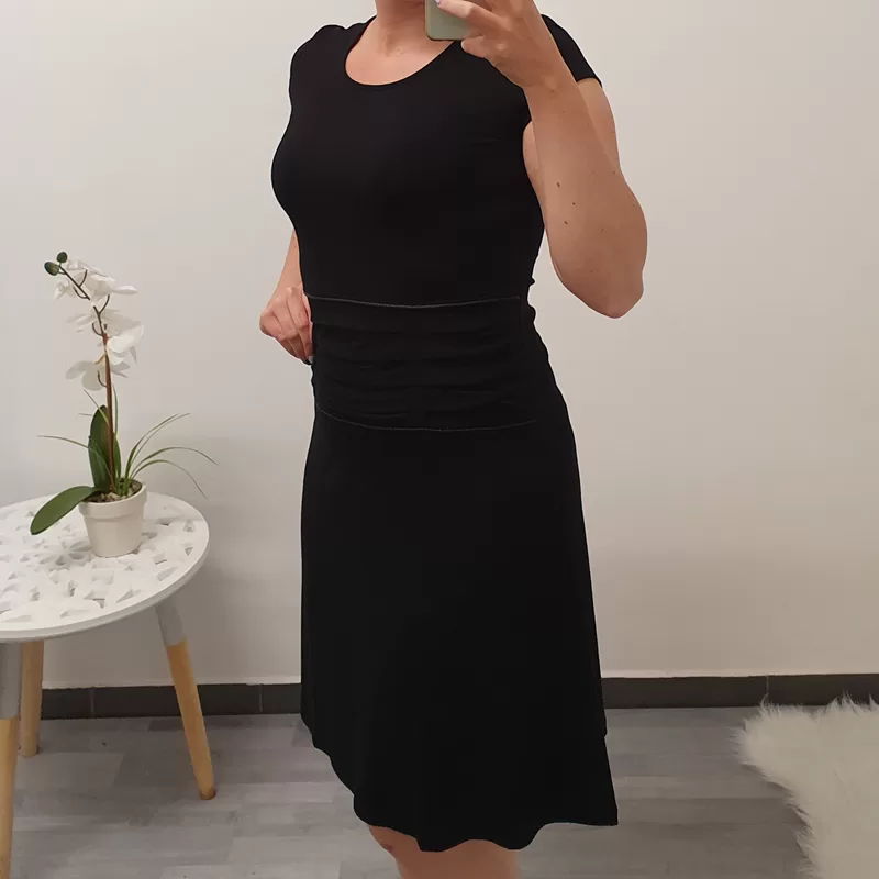 Velikost 44: širina ramen 42 cm, obseg v prsih 100, dolžina obleke 106 cm
