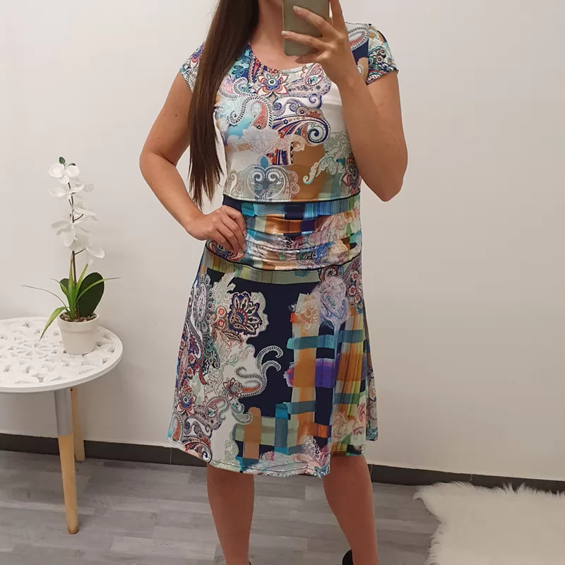 Velikost 44: širina ramen 42 cm, obseg v prsih 100, dolžina obleke 106 cm