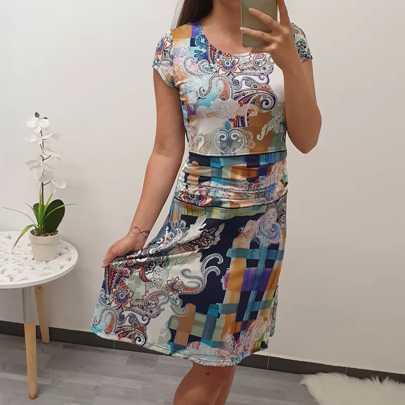 Velikost 36: širina ramen 37 cm, obseg v prsih 88, dolžina obleke 100 cm