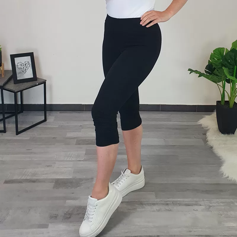Ženske bombažne pajkice Ada v črni barvi. Pajkice imajo višji pas, hlačnice so ozke in 3/4 dolžine. Na kolenih imajo nabrano blago. Na voljo so od številke 36 do 50.