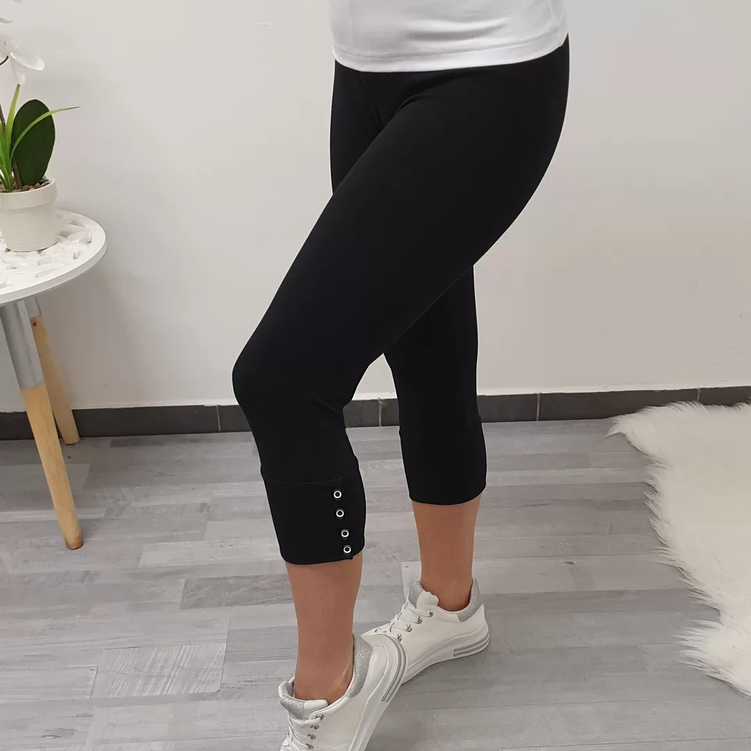 Kapri pajkice Lori v črni barvi. Pajkice imajo dodane dekorativne gumbe.