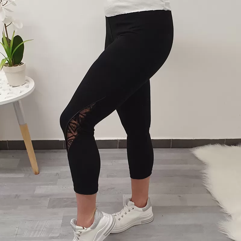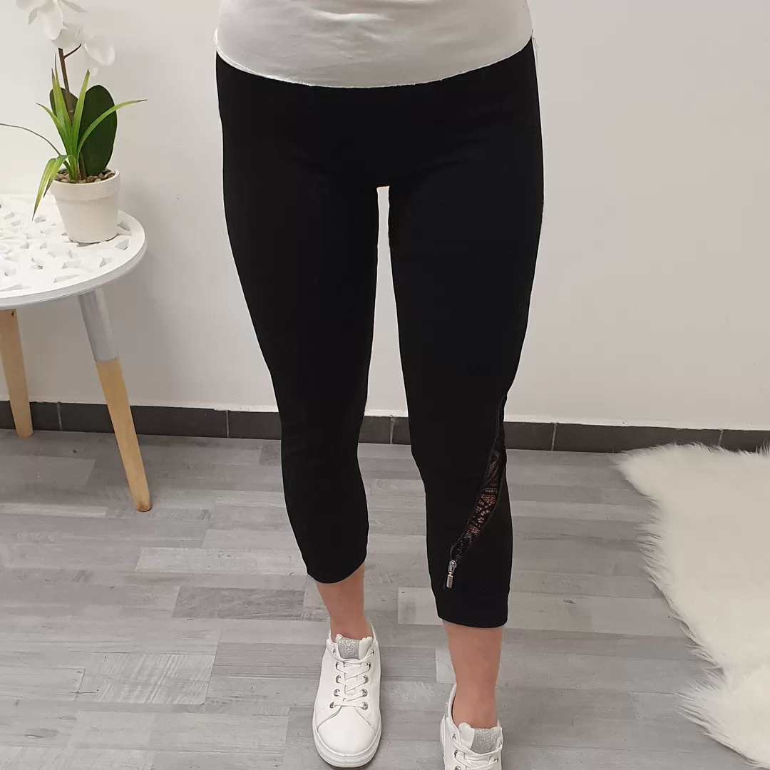 7/8 pajkice Tena v črni barvi. Pajkice imajo na desni hlačnici dodano dekorativno zadrgo in čipko.
