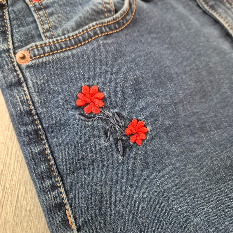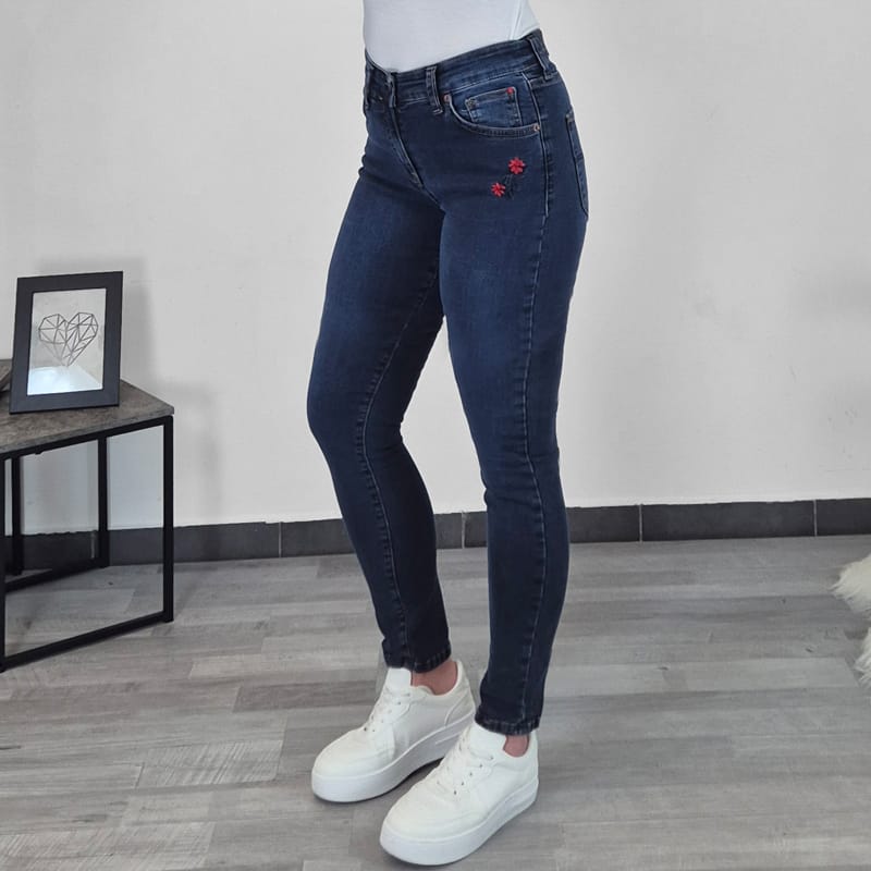 Ženske Scoch kavbojke z vezeno rožico.