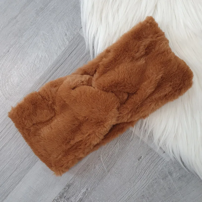 Ženski trak primeren za hladne dni. Trak je v rjavi barvi, izdelan je iz pliša in je zelo mehak.