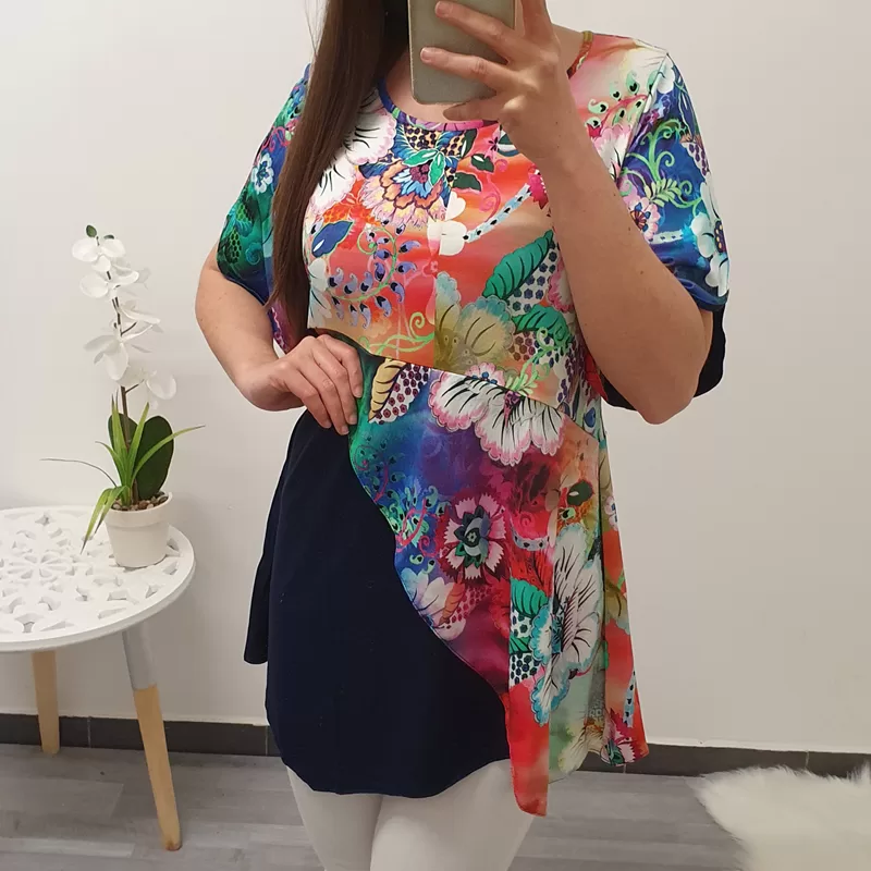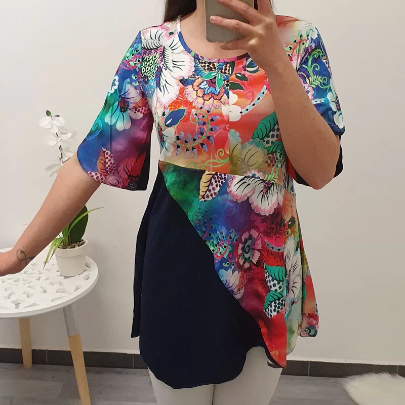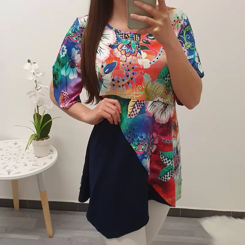 Tunika Maša s tiskom. Tunika ima zvončkast 3/4 rokav.