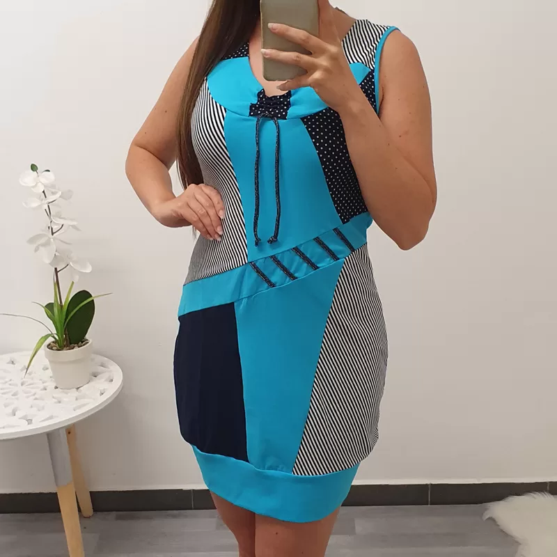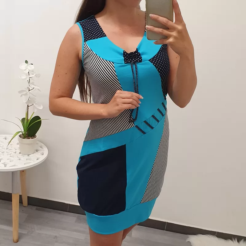 Tunika Patricija v turkizno modri barvi. Tunika je brez rokav.