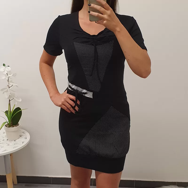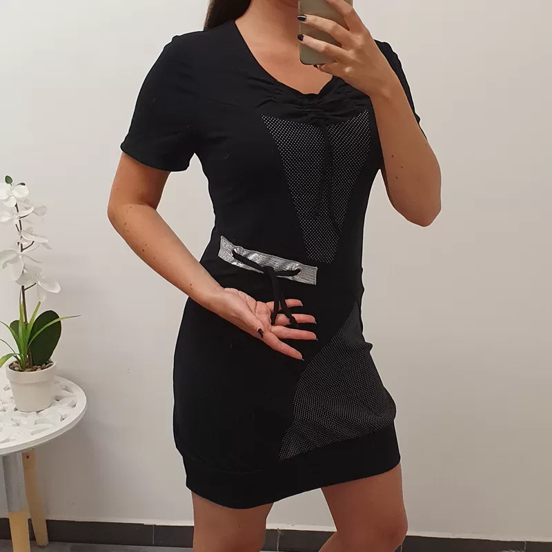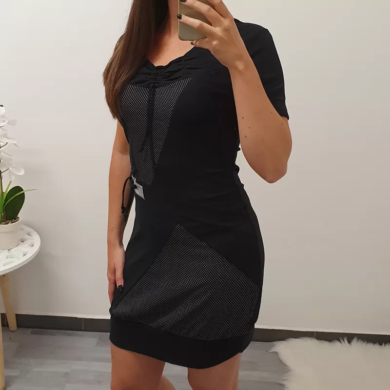 Tunika Tisa v kombinaciji srebrne in črne barve. Tunika je s kratkimi rokavi, na spodnjem delu ima dodan patent.